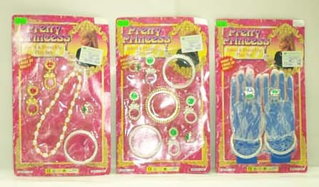 Necklace, earrings, bracelets, gloves, and rings. Dimensions: 7 x 0.5 x 11.5 in Minimum order - 1 dozen