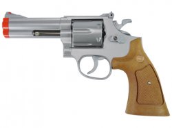 The Model-933 Spring Revolver features a 4" barrel and six shot shell loading. It includes six single BB shells.