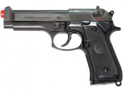 This Spring pistol features a M9 design and is black in color. FPS: 260 w/ 0.12g Action: Spring-action Hop-up: Fixed Other items needed: 0.12g BB, MUA958 - spare magazine Login for quantity discounts